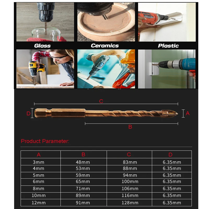 Набор сверл для перекрестного стекла из цементированного карбидного наконечника, керамические бетонные сверла, подходит для деревянных настенных зеркал и пластиковой плитки