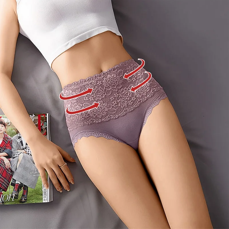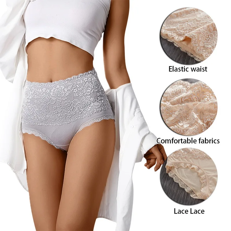 Трусы женские кружевные, с высокой талией, дышащие, утягивающие