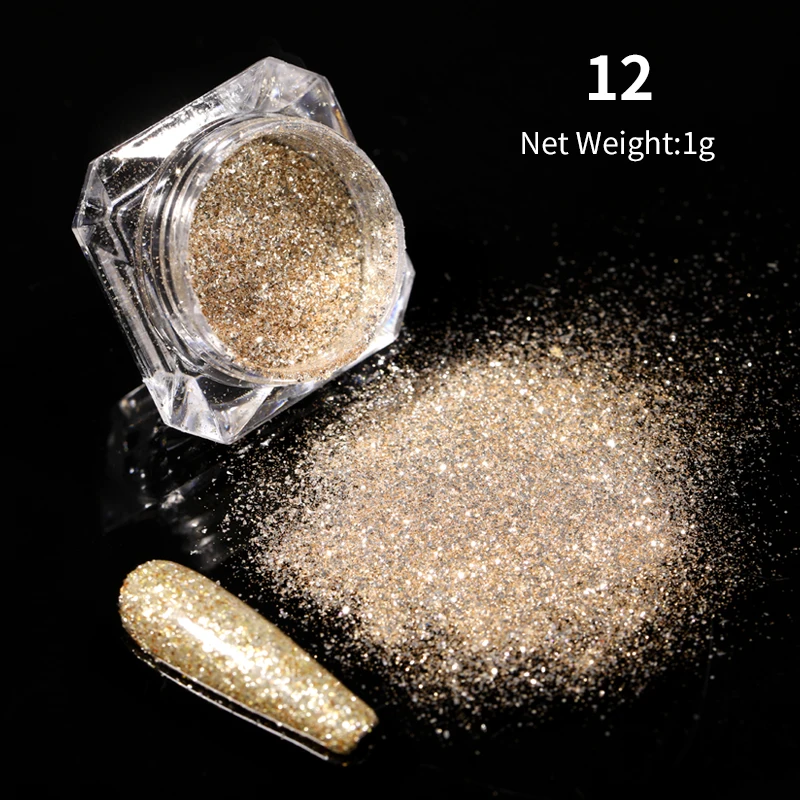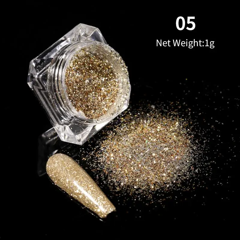 1 коробка блестящая пудра для ногтей однотонная зеркальная пигментная Пыль для ногтей Золотой Серебряный Блестящий Порошок для ногтей для украшения ногтей