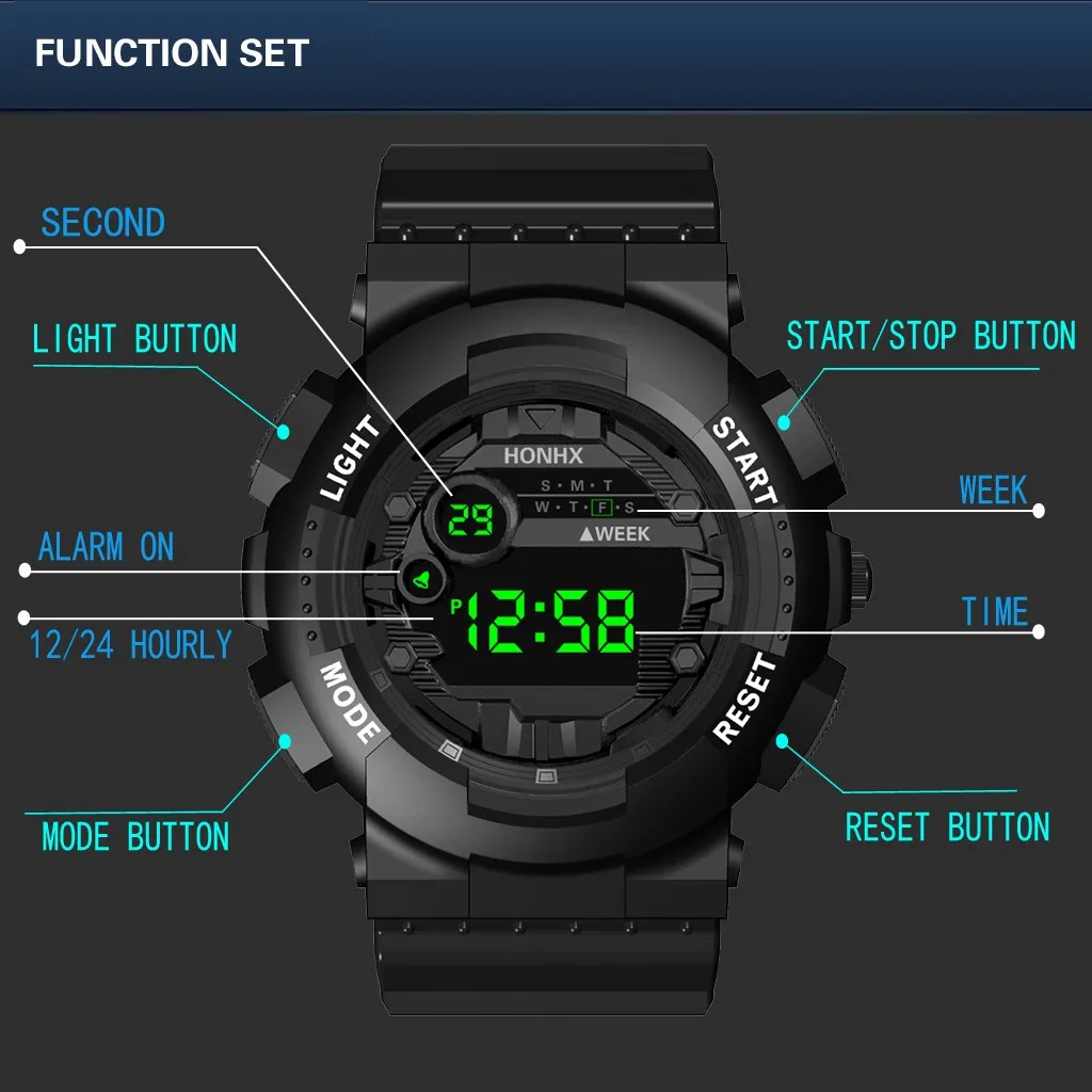 HONHX роскошный мужской цифровой светодиодный часы с датой спортивные мужские уличные электронные часы