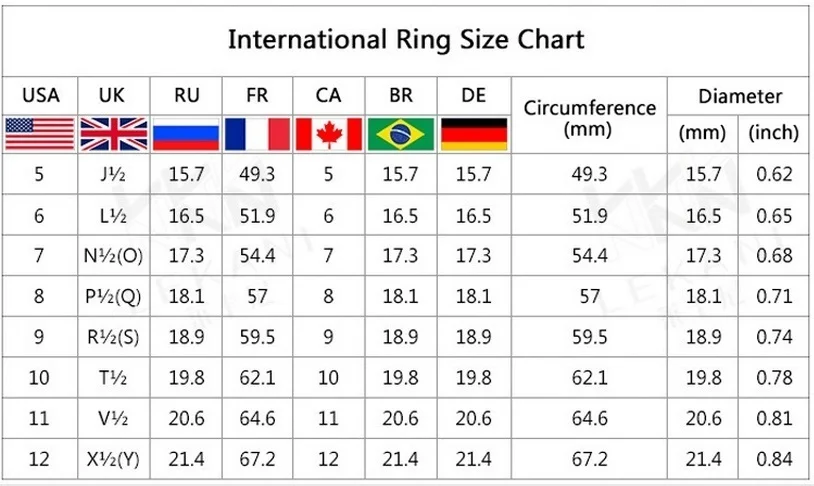 Размер кольца (США): 6, 7, 8, 9, 10,11