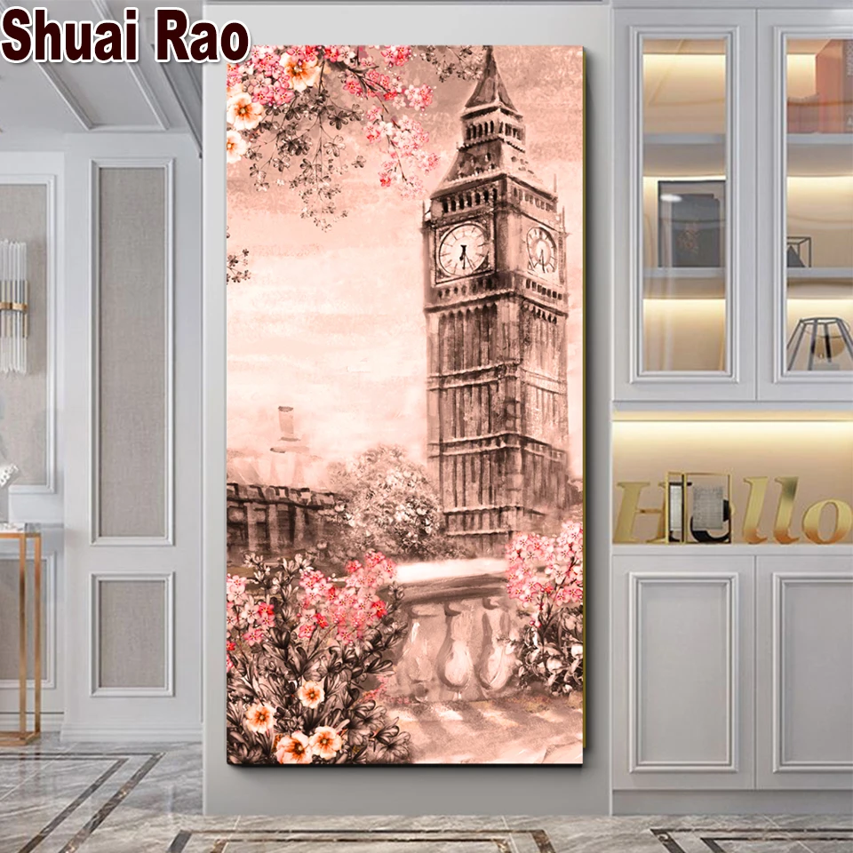 Алмаз большого размера картина полная Новинка Биг Бен Flwoers картина Алмазная вышивка Стразы Винтаж Лондон Пейзаж головоломка