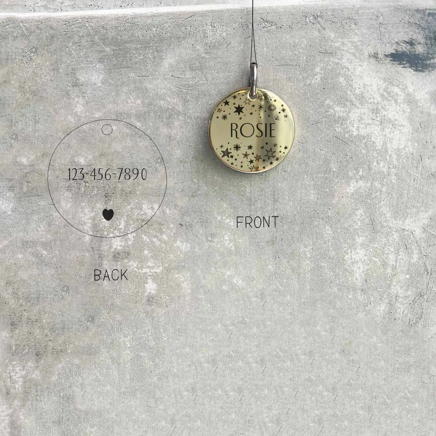 002 именная идентификационная бирка для собак и кошек с гравировкой имени домашних животных для ошейника с узором звездами Лазерная Передняя и задняя индивидуальная четкая текстовая гравировка