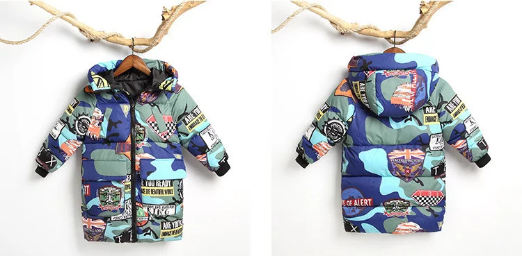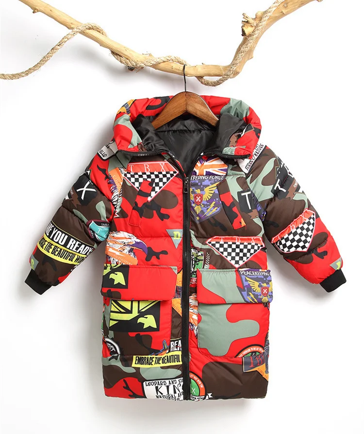 Новинка; Зимние куртки с капюшоном для мальчиков и девочек; Камуфляжные парки с граффити для подростков; Плотное длинное пальто; Детская одежда; Зимний комбинезон