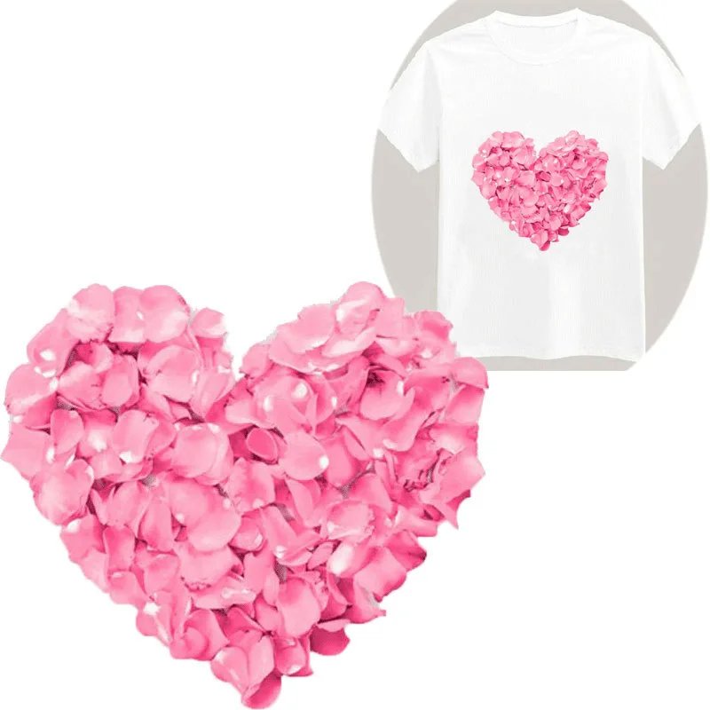 Термотрансферные нашивки с розовым сердцем в виде лепестков роз, нашивки для футболок с индивидуальным принтом, большие 3D Виниловые фотоаппликации для одежды