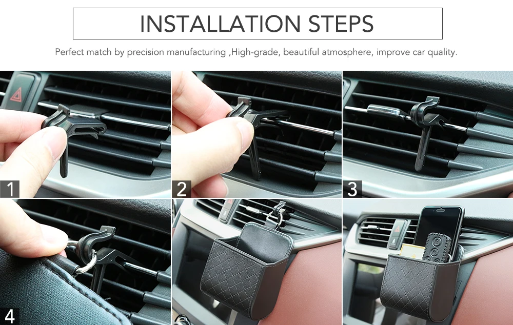 Характеристика:Контейнер для хранения автомобиля мобильный телефонМожет защитить ваши телефоныИзносостойкие, морозостойкие и АнтивозрастныеМаленький, но функциональный, может держать ваши сигареты чехол, очки, ручки и т. Д.Легко устанавливается и снимается, просто Повесьте на автомобильную воздушную розеткуДержите автомобиль аккуратным и чистым и держите движение, основные принадлежности в пределах легкой досягаемостиИзысканное мастерство, новый дизайн Спецификация:Материал: из искусственной кожиТип: ведро для хранения автомобиляПодходит для автомобильного выхода воздуха горизонтального дизайнаРазмер: как на картинкеЦвет: черный, коричневый, бежевый