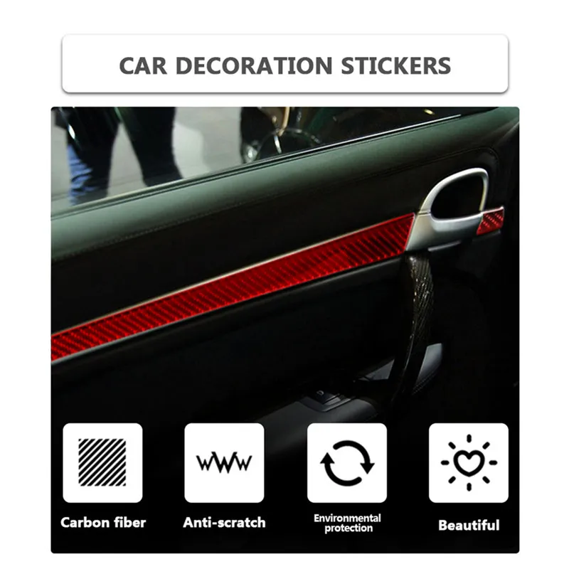Автомобильные аксессуары, красные наклейки на автомобиль, отделка крышки из углеродного волокна, отделка передней и задней двери, 6 шт. для Porsche Cayenne 2003-2010