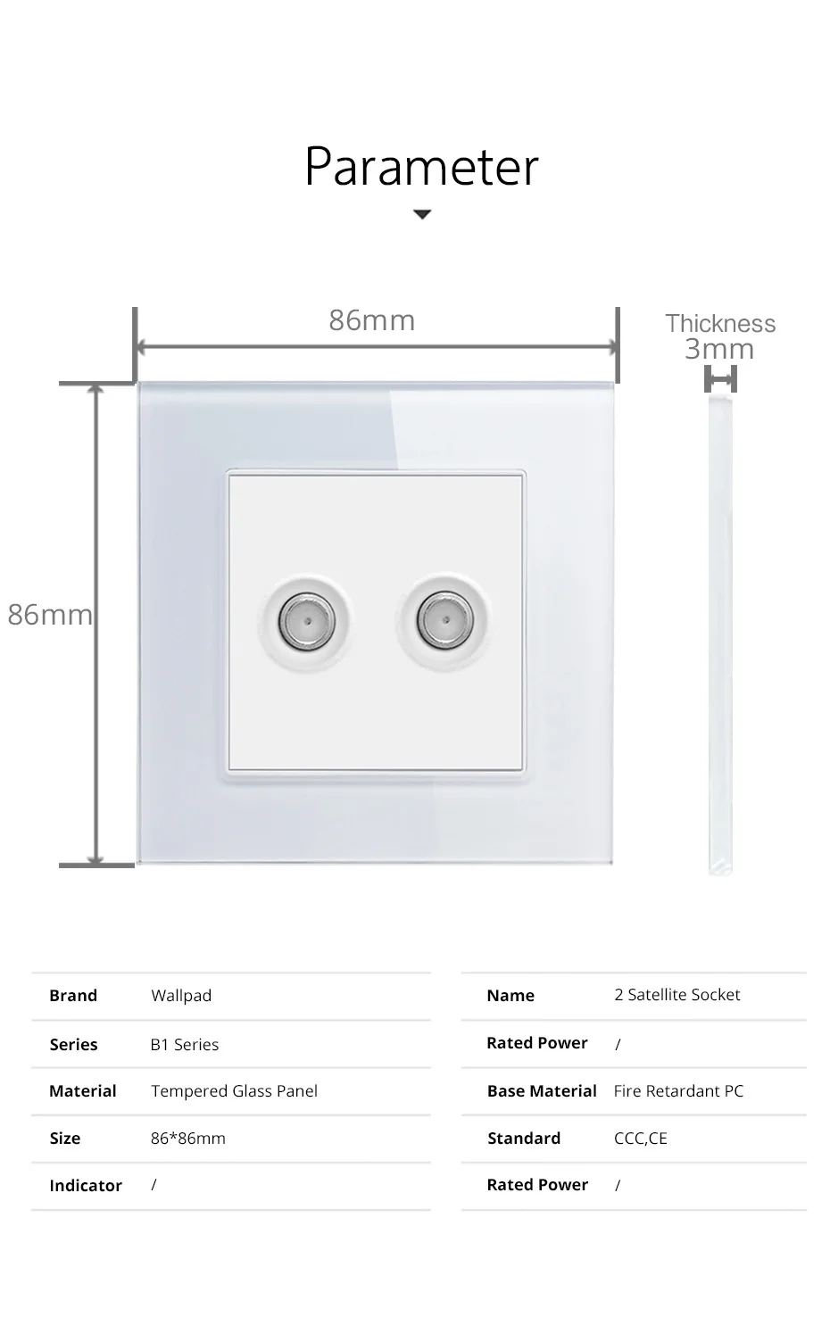 Wallpad S6, Белая Двойная спутниковая ТВ-антенна, розетка для прово...