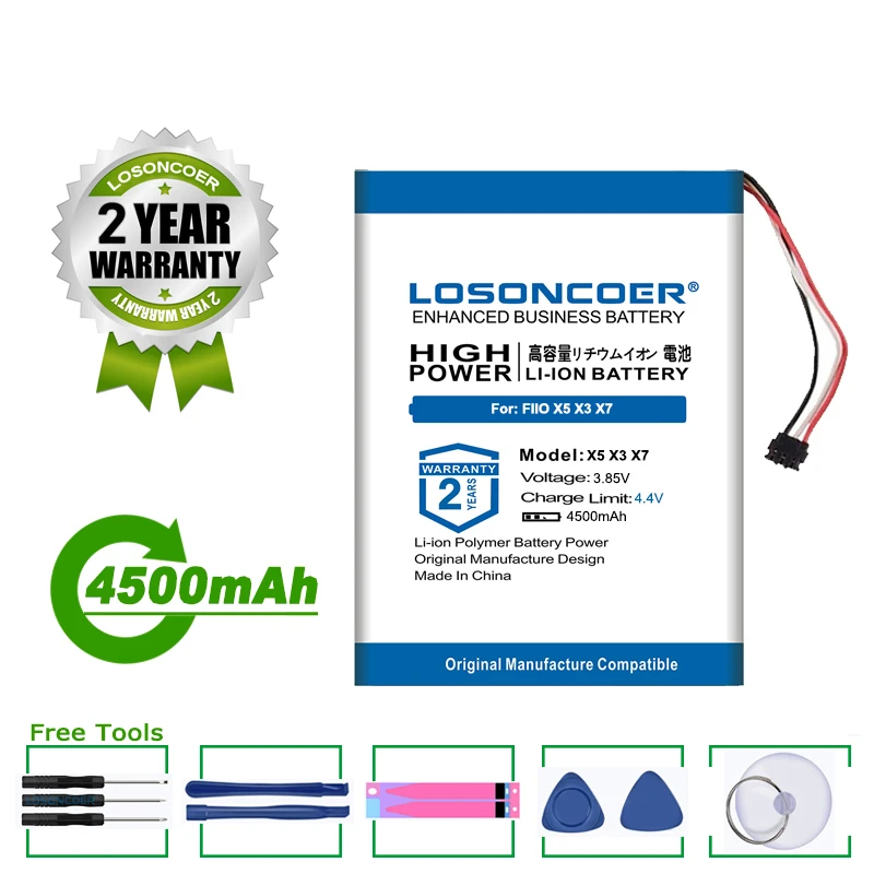Аккумулятор LOSONCOER 4500 мАч для FIIO X1 X5 X3 X7 II III 2 3era Player, литий-полимерный аккумулятор