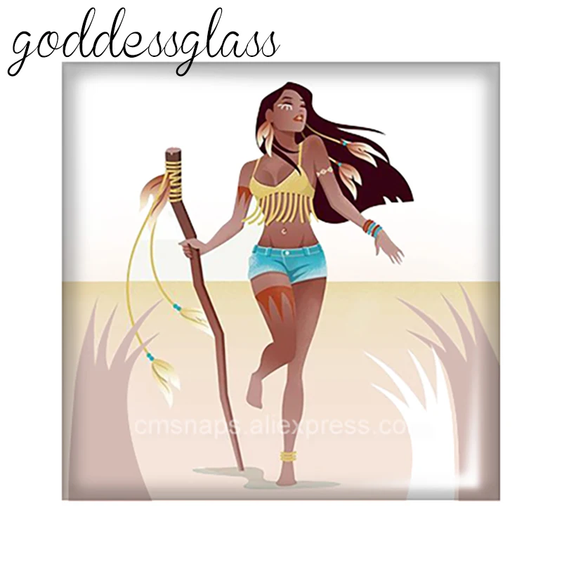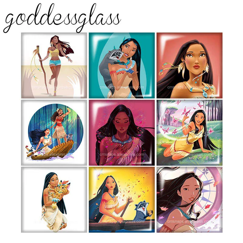 Диснеевской принцессы Покахонтас квадрат 10 шт. 12 мм20 мм25 мм кабошоны разрисованные изделия из стекла демо с плоской задней частью браслет ювелирные украшения своими руками