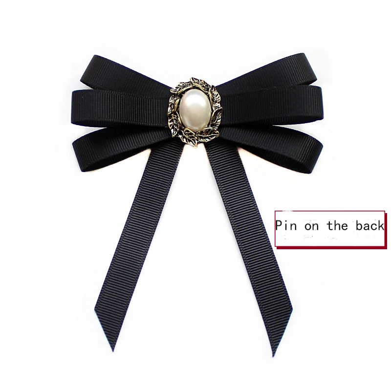 Кружевная лента ручной работы, жемчужная черная брошь для галстука-...