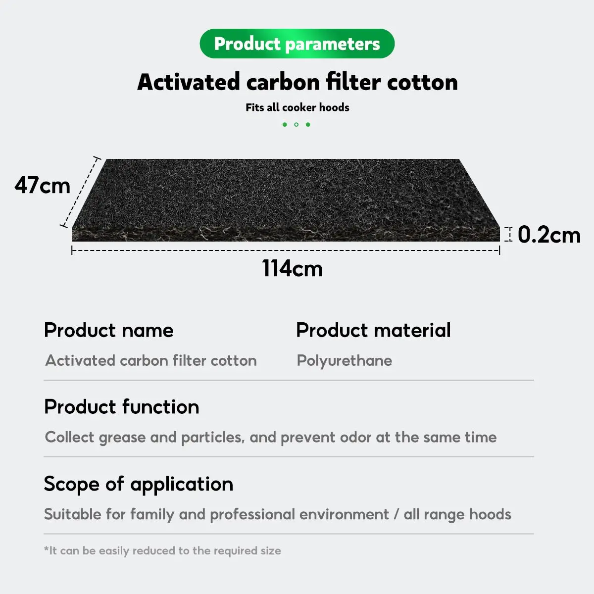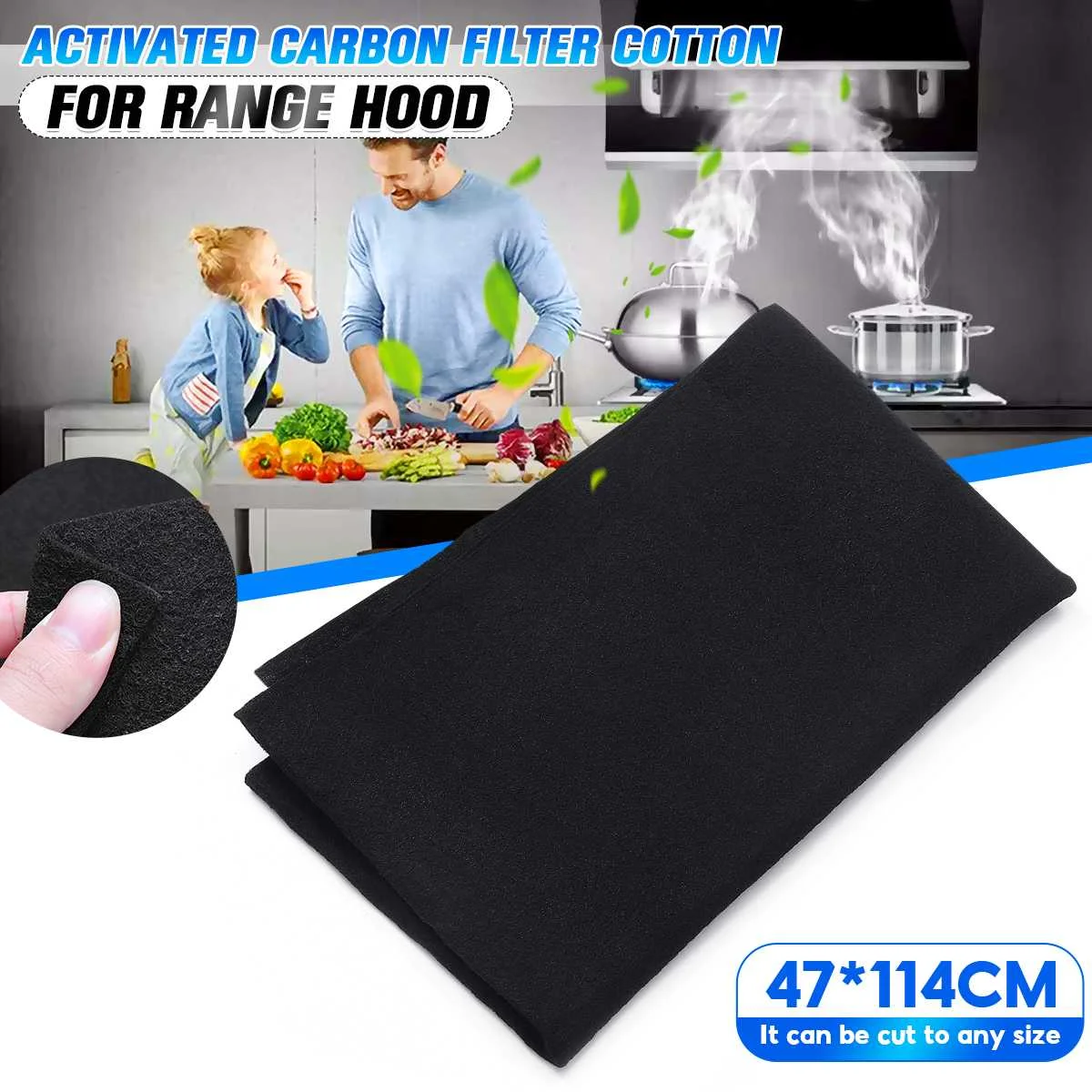 Черная вытяжка для вытяжки кухонной плиты 47x114 см, фильтр с активированным углем, хлопок для вытяжки дыма, запчасти для домашней кухонной вытяжки
