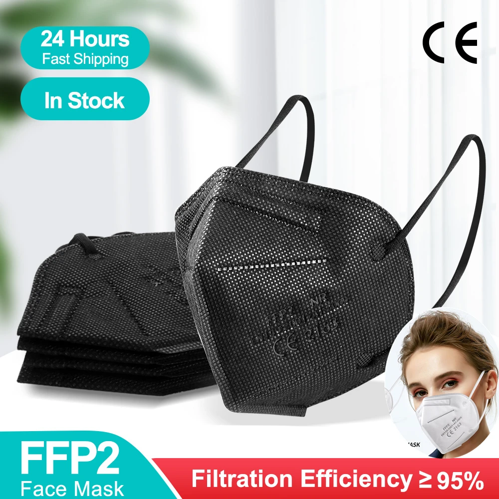 5 слоев FFP2 маска для взрослых Black KN95 Mascarillas FPP2 одобрен...