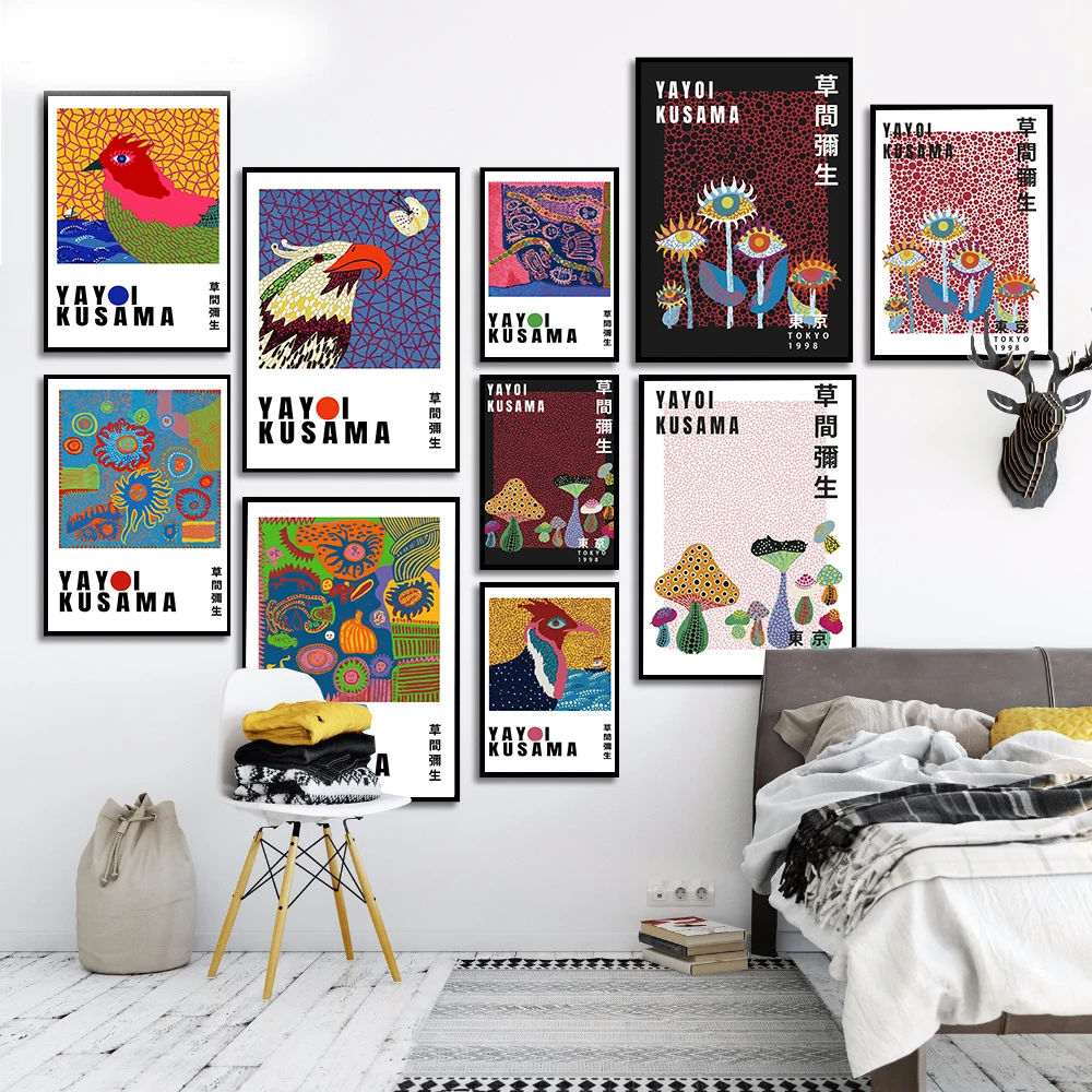 Yayoi кусама грибы точки птица цветок скандинавские плакаты и принты Настенная картина на холсте настенные картины для декора гостиной