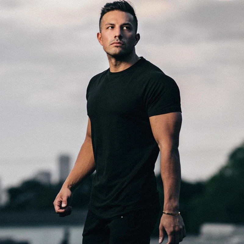 Футболка мужская с коротким рукавом, модная рубашка в обтяжку, мягк...