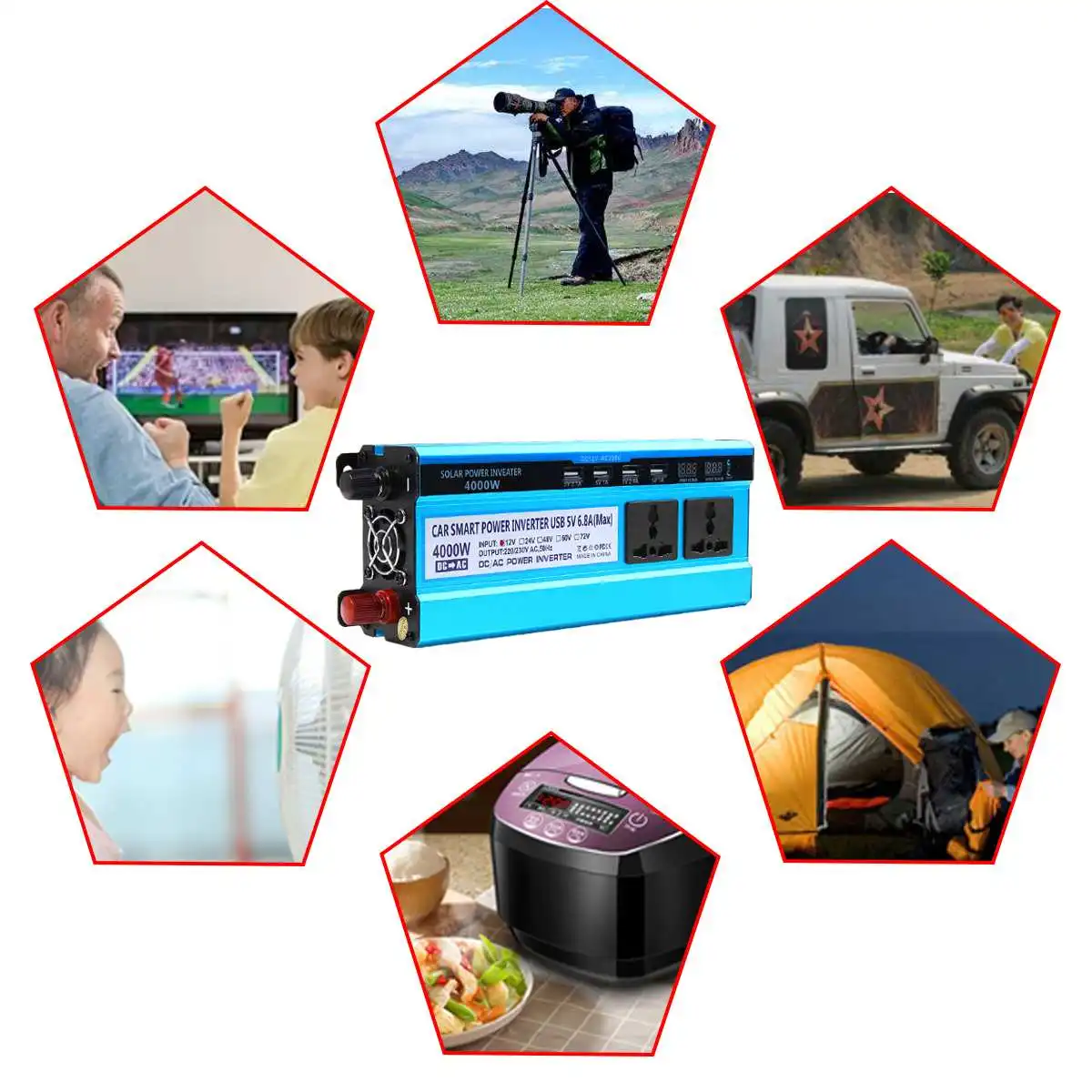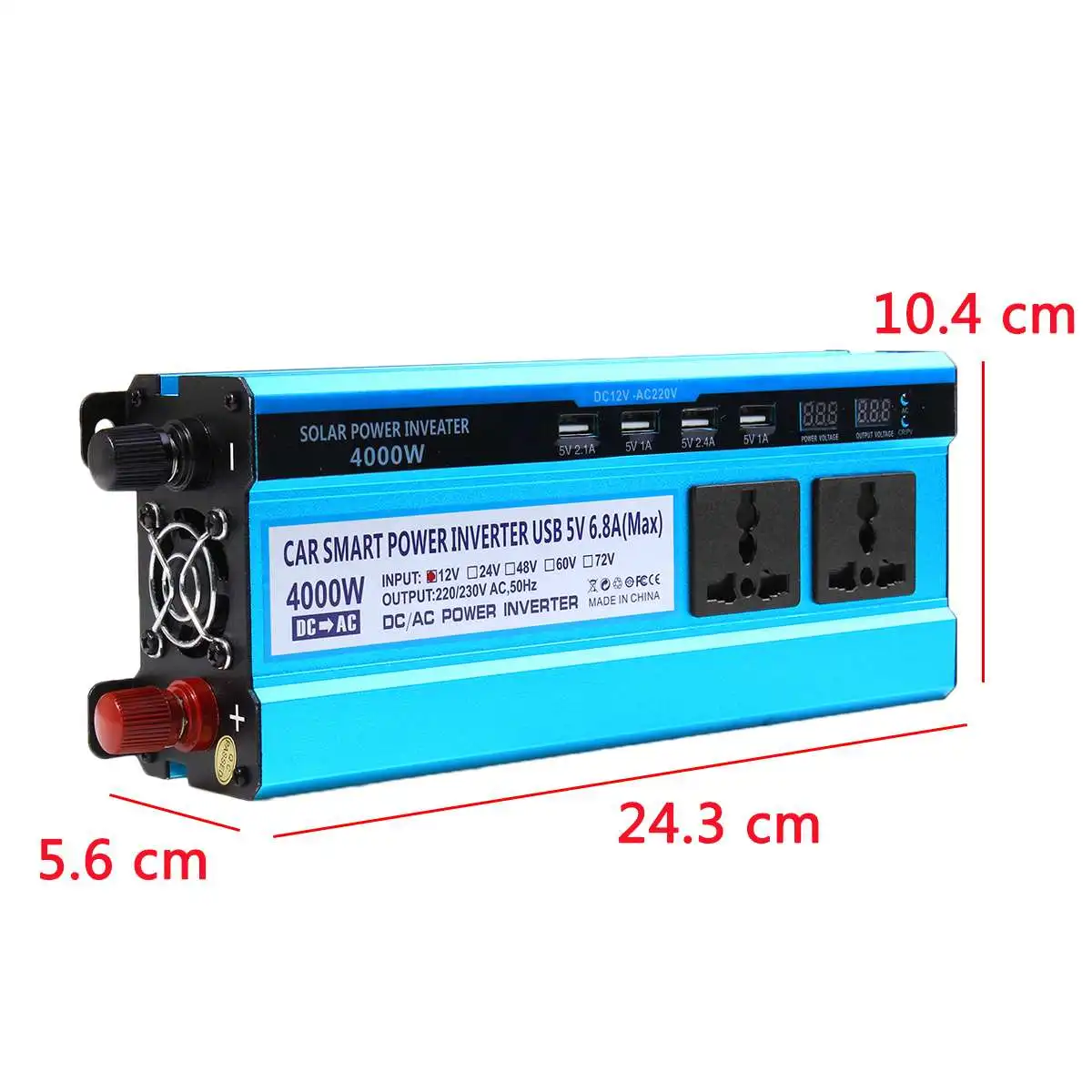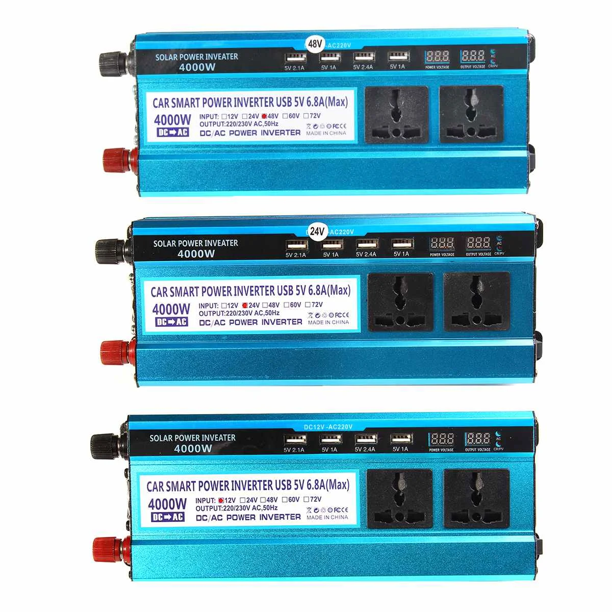 Автомобильный инвертор на солнечной батарее, 12 В24 В48 В, 4000 Вт, 4 порта USB, трансформатор напряжения, Преобразователь мощности, модифицированный инвертор синусоидальной волны для автомобиля и дома