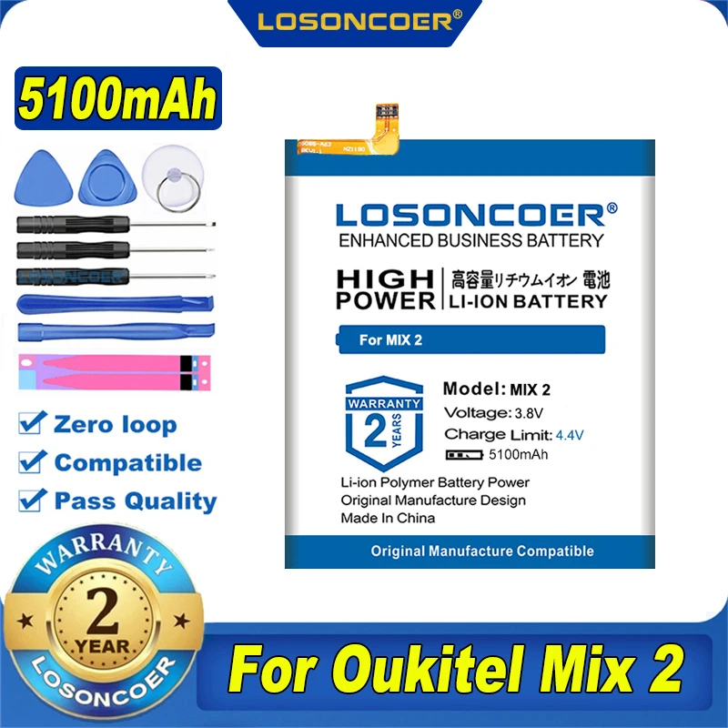LOSONCOER Батарея 5100 мАч, Батарея для Oukitel MIX 2мобильный телефон