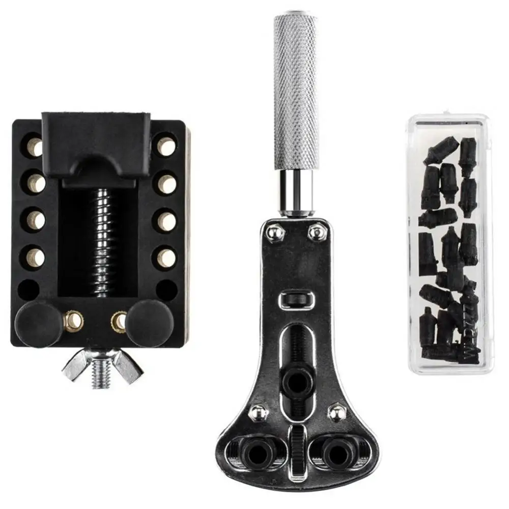 Характеристики: Высококачественный набор инструментов для ремонта часов, отлично подходит для профессионального ремонта часов. Многие из инструментов включены для выполнения наиболее распространенных задач, таких как Регулировка часов, открытие задней части часов, меняющиеся часы-аккумуляторы, меняющиеся часы-прокладки, регулировка ремешка часов и многое другое. Вы сможете открыть часы и удалить практически любой ремешок часов с относительной легкостью. Если вам нравится иметь переносной набор инструментов, который является маленьким, чистым и функциональным, этот набор идеально подойдет для открытия и работы на ваших часах в любом месте, которое вы хотите. Поставляется с переносной чехол, портативный и удобный в использовании. Тип: набор инструментов для ремонта часов Количество: 146 шт./компл. Материал: хром-ванадиевая сталь, пластик Особенности: прочный, полезный, многофункциональный Примечание: благодаря светильник и экрана Цвет Товара может быть s светильник ly отличается из-за характеристик монитора компьютера. Посылка включает в себя: 1 x инструмент для снятия ремешка 1 x открывалка для задней панели часов (желтая ручка) 1 х черный Чехол-держатель для часов 1 х чехол для открывания 1 х красный чехол Нож для открывания 3 отвертки 3 x пробивные штифты 1 x пружина 1 пинцет 1 Набор Чехол открывалка шпильки 2 запасных наконечника для пружинных стержней 3 запасных штифта для удаления звеньев 108 x пружинных штифтов для ремешка часов (8 мм-25 мм)