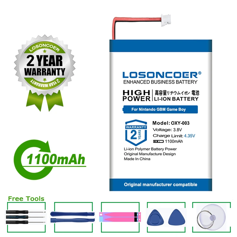 LOSONCOER аккумулятор OXY-003 1100 мАч 3,8 в перезаряжаемый литий-ионный аккумулятор Набор для Nintendo GBM игровой мальчик микро батареи