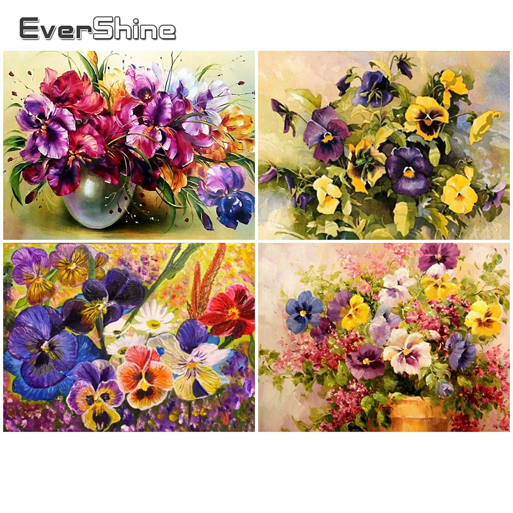 Алмазная живопись EverShine, картина из квадратных страз с цветами, мозаика сделай сам в стиле Стразы Pansy, хобби ручной работы