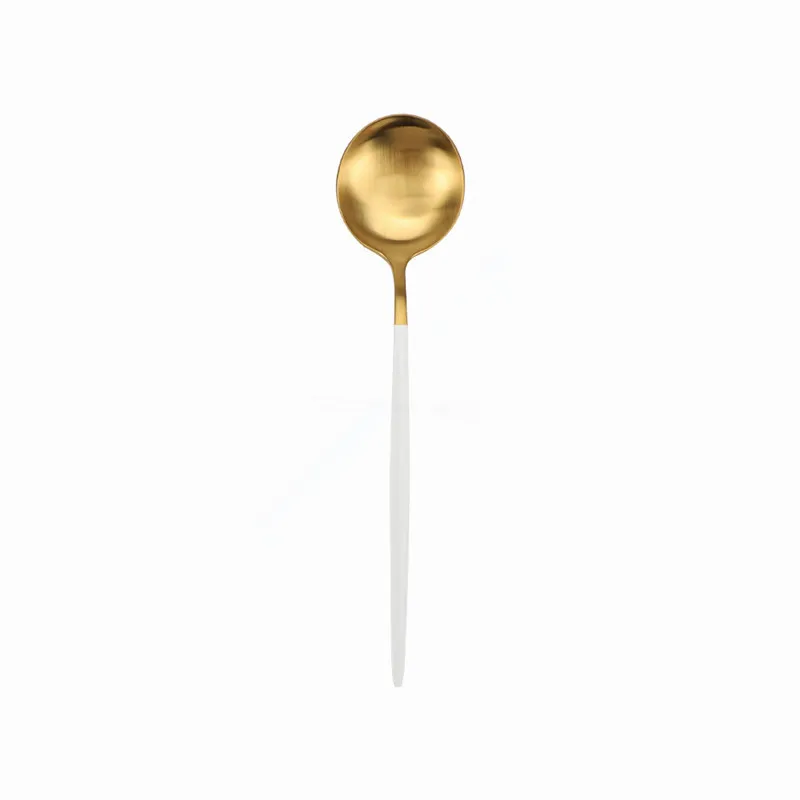 Набор столовых приборов из нержавеющей стали, комплект из белого золота, ложки и вилки, матовая посуда
