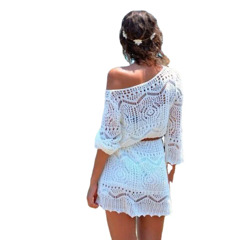 Сексуальные кружевные платья для женщин, Новинка лета 2021, вязаная крючком блузка с круглым вырезом, Пляжное вязаное платье, элегантные модные платья для женщин