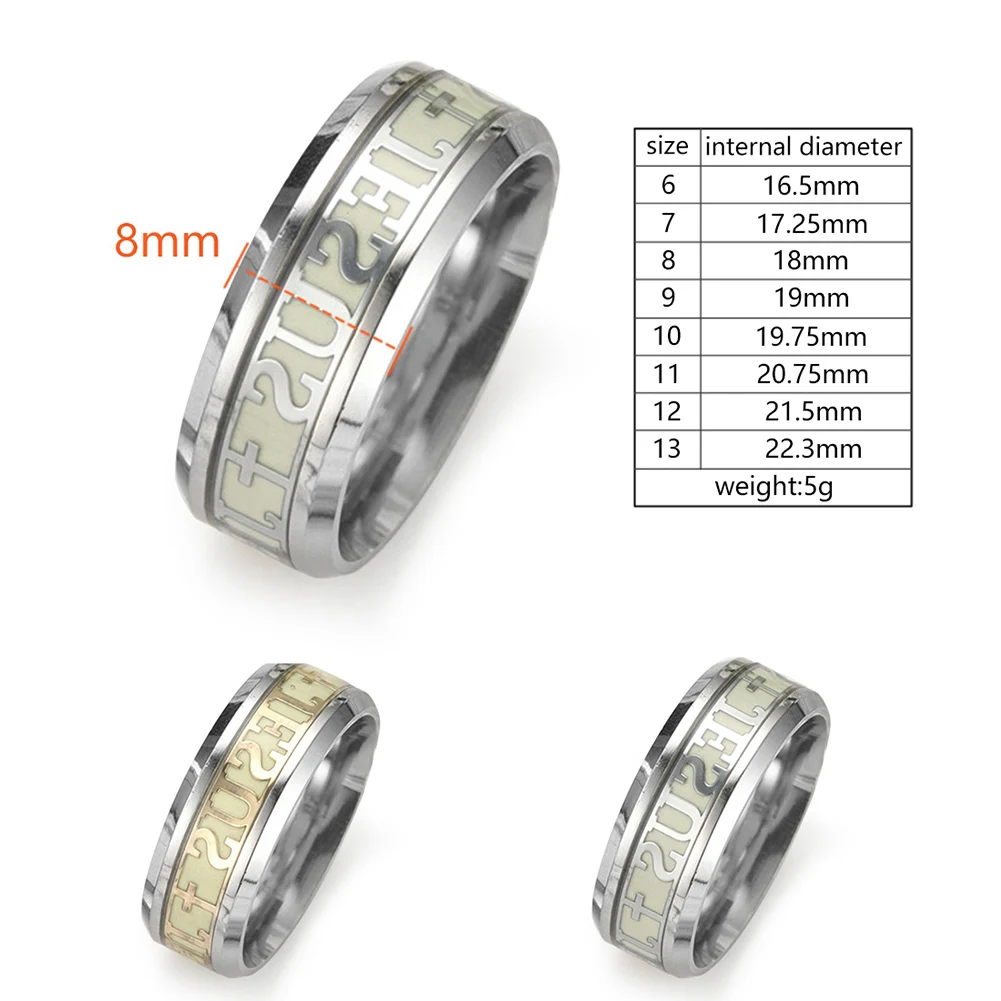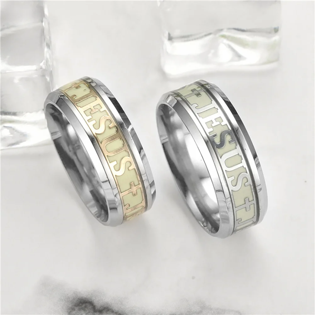 Светящееся кольцо с Иисусом Христа, кольцо из нержавеющей стали с крестом, ювелирные изделия, обручальное кольцо