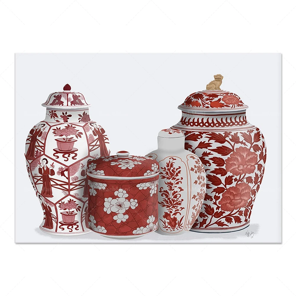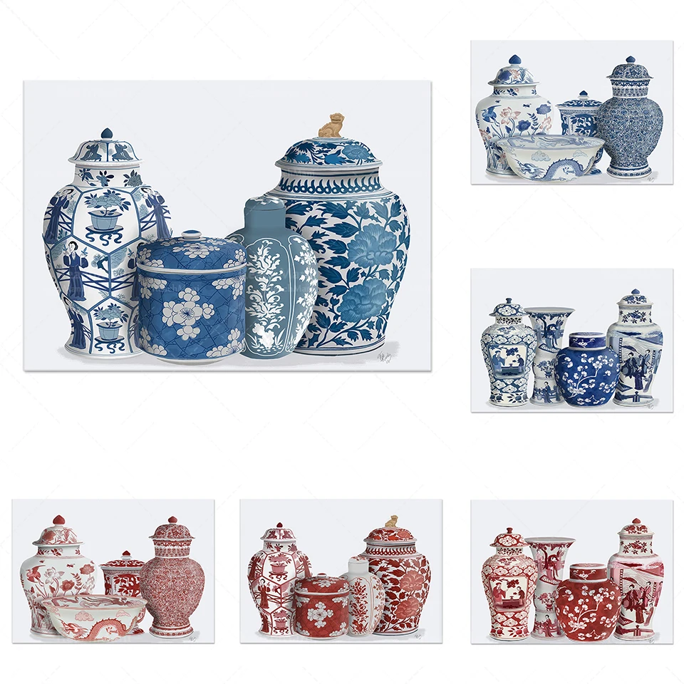 Настенный китайский арт, китайские стильные вазы, синий и белый фарфор, красный и белый фарфор, имбирь горшок принты, Ming и фарфоровая посуда, набор для электронного отслеживания товаров, при заказе icon star icon star icon star icon star icon star