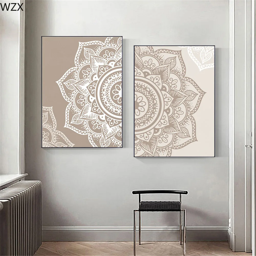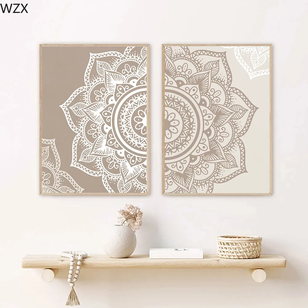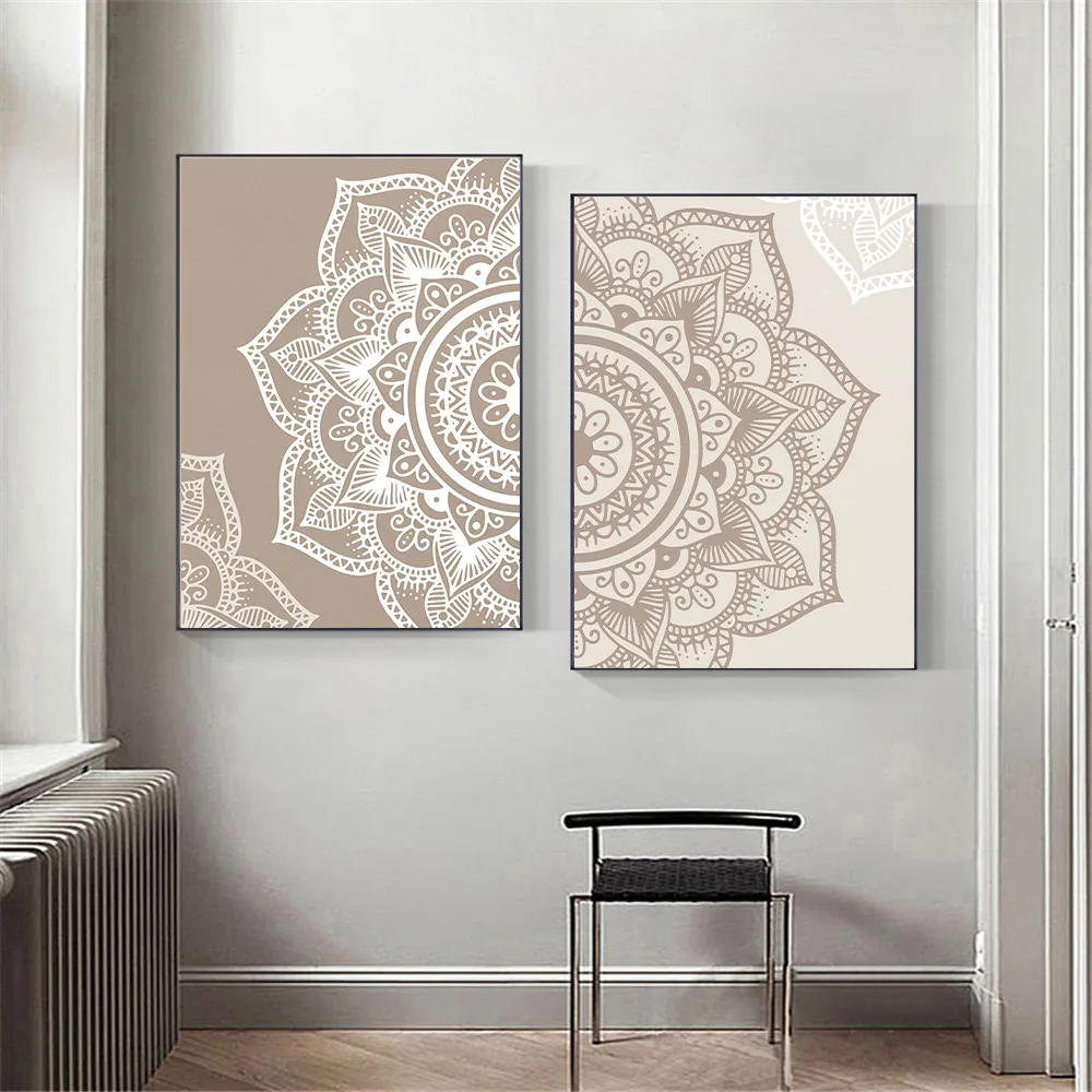 Дзен, йога Мандала Цветочная Картина на холсте бежевые нейтральные цвета Бохо настенная печать картины для гостиной домашний Декор постер