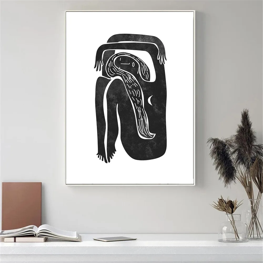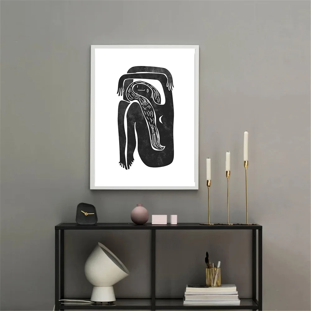 Абстрактный Женский плакат на стену, рисунок на линии, Художественная печать, черная фигурка, рисование на холсте, Скандинавская живопись, декор для гостиной