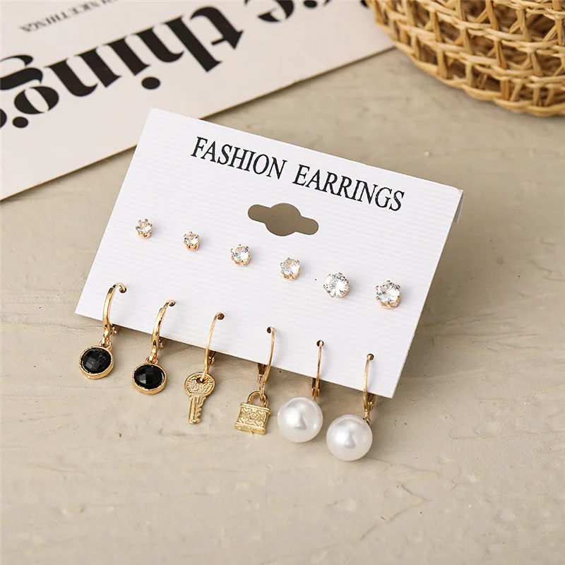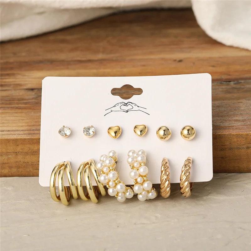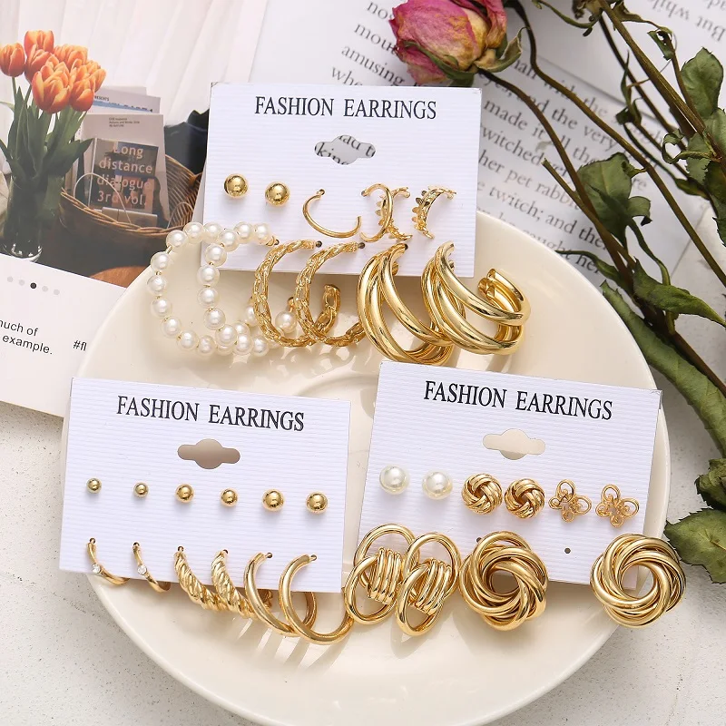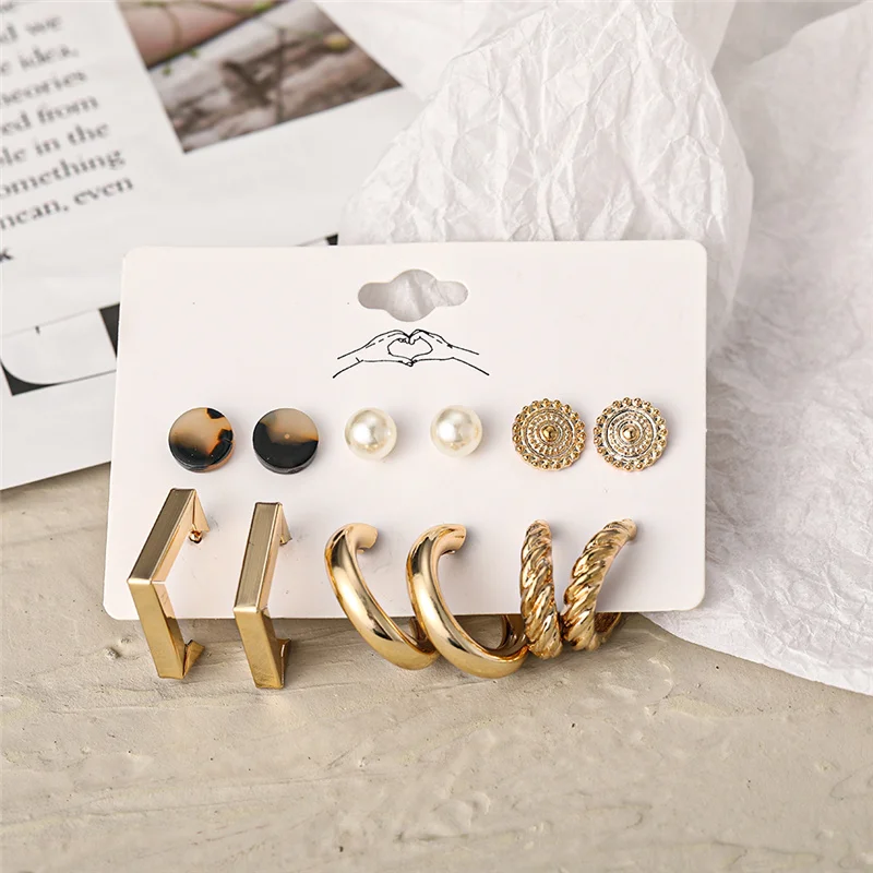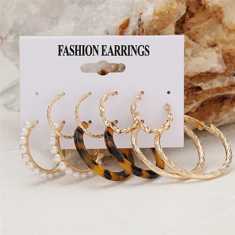 Набор серег 5 пар, простые серьги из акрилового сплава с металличес...