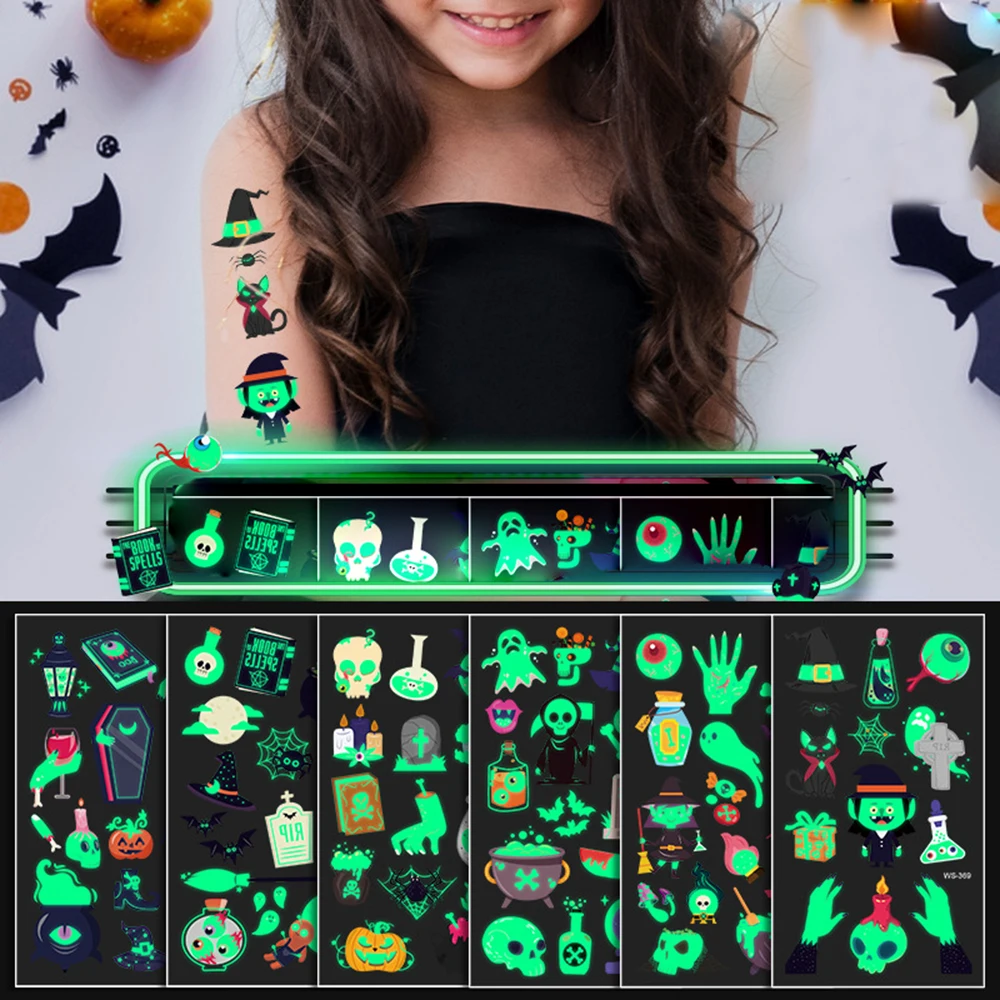 Украшение на Хэллоуин 2021, светящаяся татуировка, наклейка для дет...
