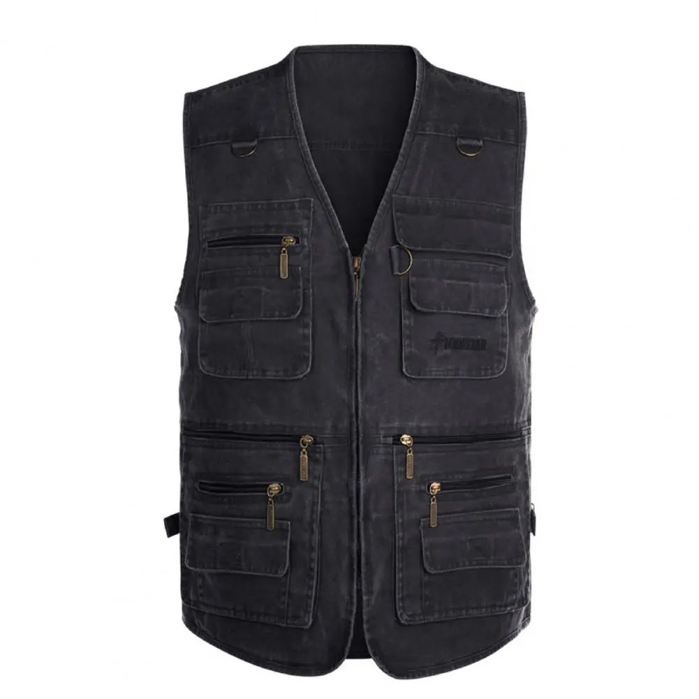 Мужской классический жилет с несколькими карманами, мужское однотонное разгрузочное пальто без рукавов, жилет для фотографа, большой размер, куртка для повседневной жизни