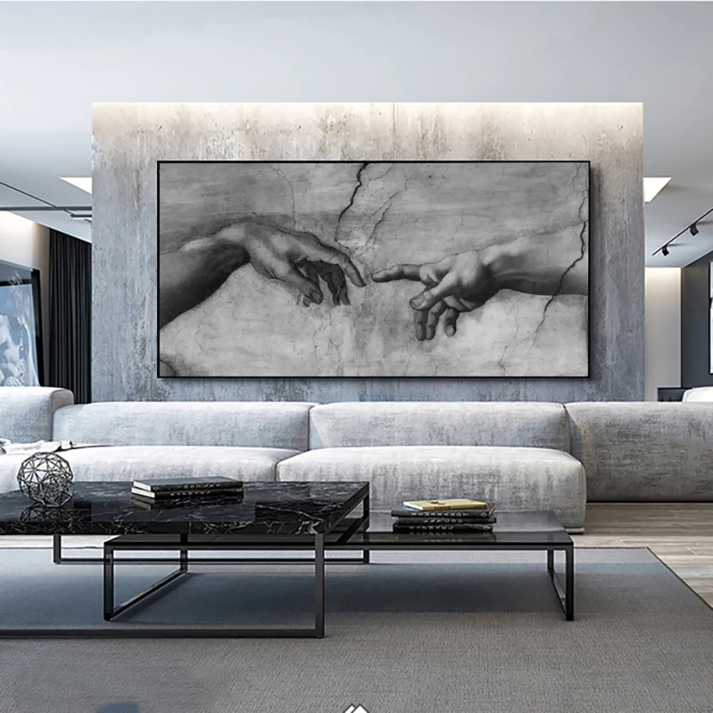 Картины на холсте Сотворение Адама Микеланджело, знаменитые искусственные картины на стену для гостиной, домашний декор