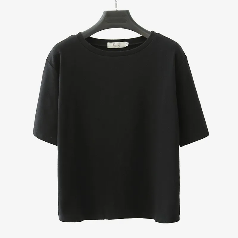 Футболка женская, летняя, однотонная, свободная, с круглым вырезом ...