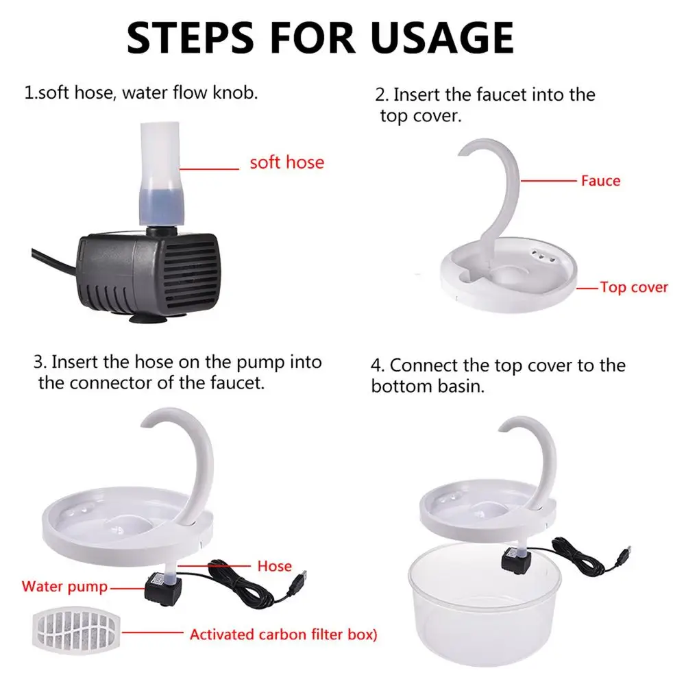 2Л автоматический фонтан для кошек, питьевой чаша для собак, бесшумный питатель для питья, лебедь в форме шеи, питательный фонтан для домашних животных, светодиодный светильник