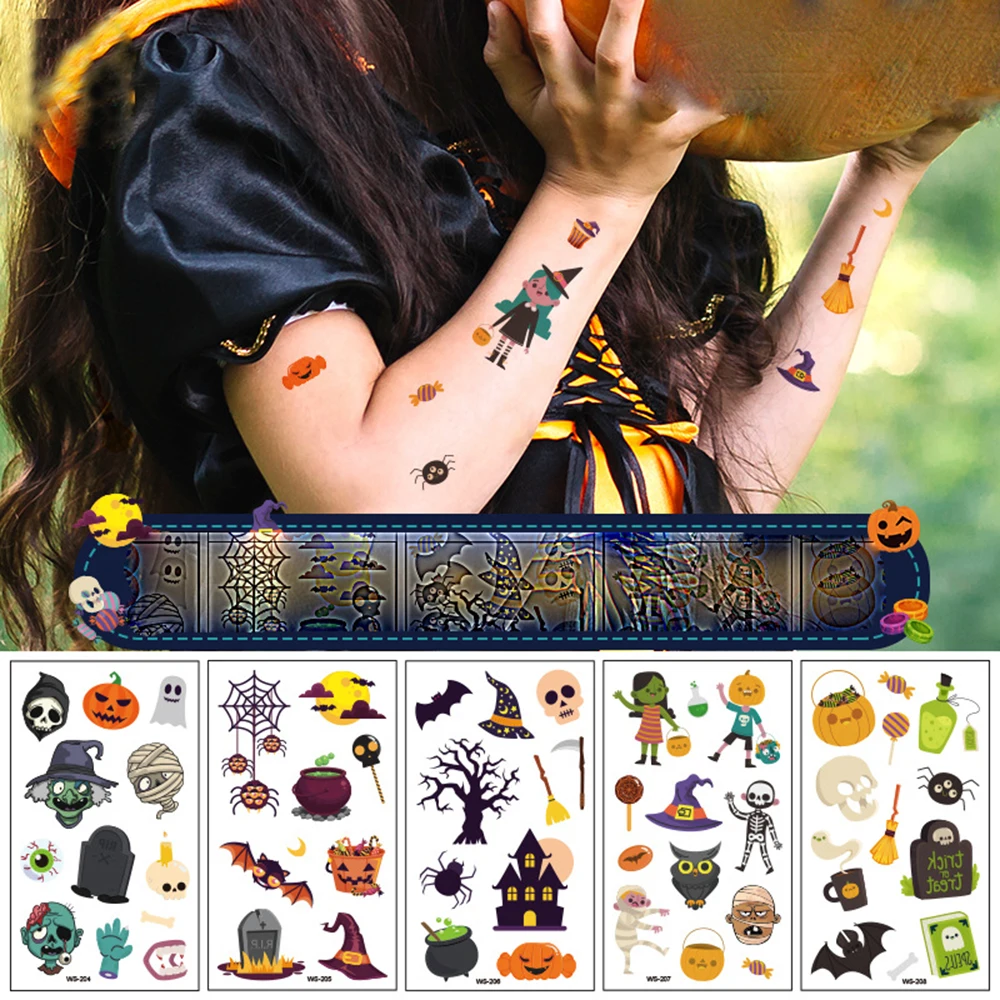 Водонепроницаемый Хэллоуин тату-наклейка для детей уход за кожей лица рука нога Мультфильм Временные наклейки Детские вечерние игрушка