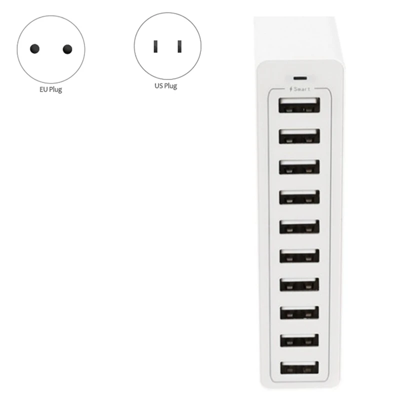 10 Порты USB Quick Charge Зарядное устройство Док-станция с кабелем, 50 Вт для телефона PC Мульти USB Зарядное устройство
