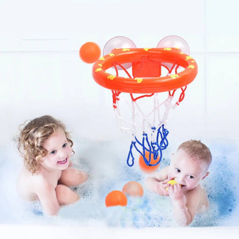 Детские Игрушки для ванны, детская корзина для стрельбы, набор для водных игр для маленьких девочек и мальчиков с 3 мини пластиковыми баскетбольными мячиками, Забавный душ