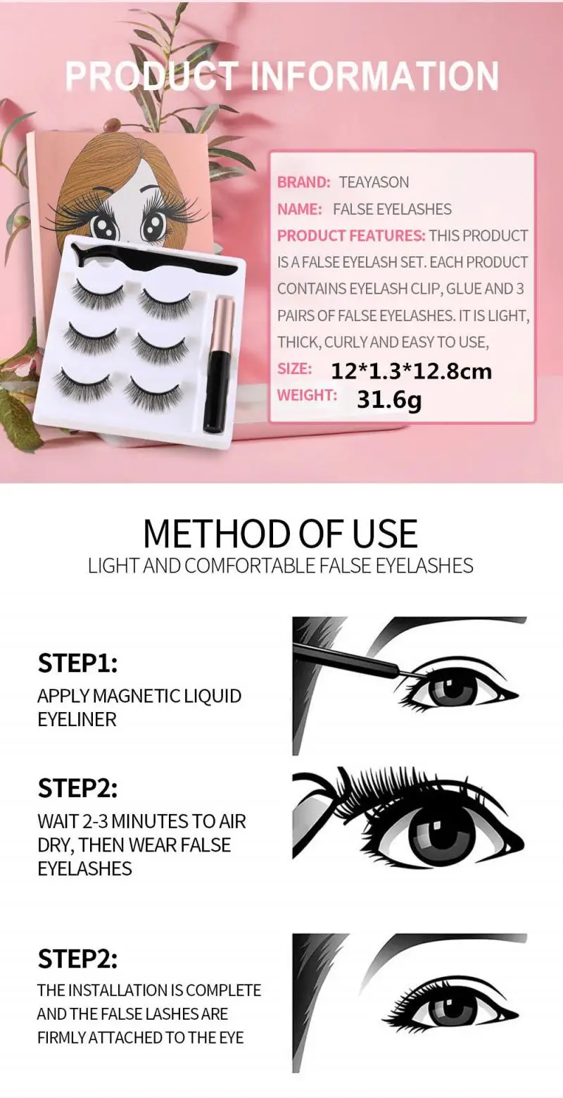 Характеристики продукта: технология beauty makeup black, квантовые магнитные накладные ресницы, магнитное поглощение, отсутствие клея и вреда, твердый и без макияжа, естественный и реалистичный, свободный, чтобы выпустить Электрический светильник для глаз.