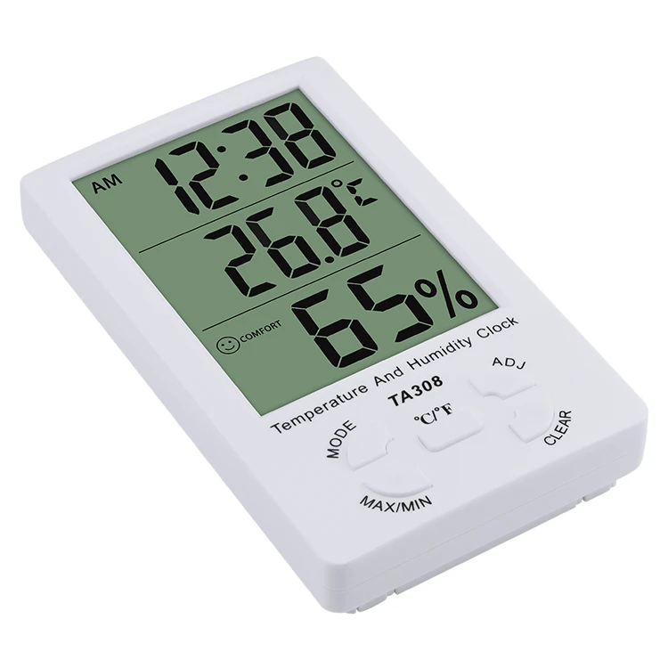Новый ЖК-цифровой термометр с детекторомМаксимальная и минимальная температура и влажность хранятся, и можно вспомнить, что отображаемое значение будет автоматически храниться в памятиЧеткий и правильный дисплей, легко читаемый на арабском языке.Легко очищается.Функция переключателя температуры °C и °F12/24 часа, системные часы