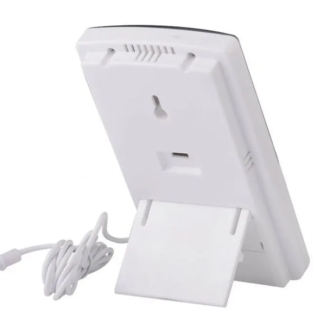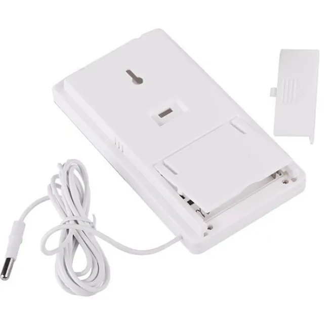 Технические характеристики:Диапазон температур на улице: 0 °C ~ + 50 °C (32 °F ~ + 122 °F)Влажность: 10%-95% RHНакапливание: +/- 1 °CУровень влажности: +- 5% RHВес: 158 гРазмеры: 122*97*24 ммОткрытый светодиодный провод питания: 1,5 мПитание: 1 х AAA батареи (не входят в комплект)