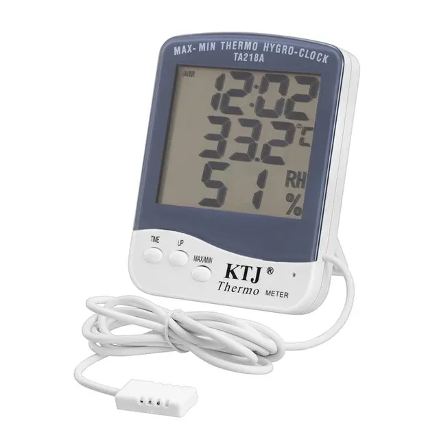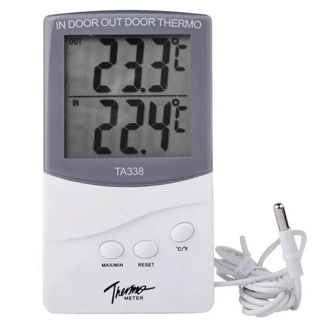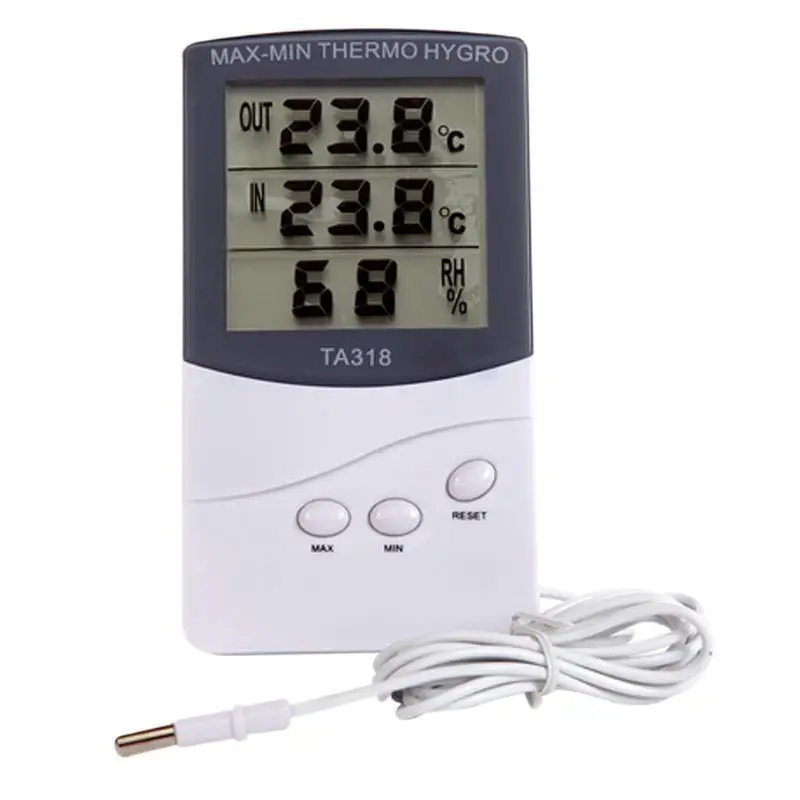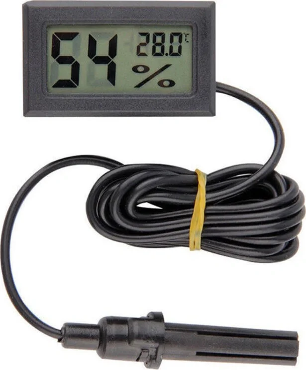 Выносной термометр с термопарой на выносном датчике.Встроенный гигрометр для измерения влажности ЖК-дисплей 4 разрядаДиапазон измерения температуры -50 +110°СРазрешение 0,1°СТочность ±1°С/±2°СДлина провода 1 м. водонепроницаемый датчикПитание Батарея =1,5 В типа "LR44" 2 шт. (в комплекте)Отлично подходит, как в качестве уличного термометра, датчик можно вывести на улицу прямо через обычное пластиковое окно и просто его закрыть, так и в качестве термометра в террариум или инсектариум.Возможно использование для морозильника, ванны, сауны, измерения температуры почвы.