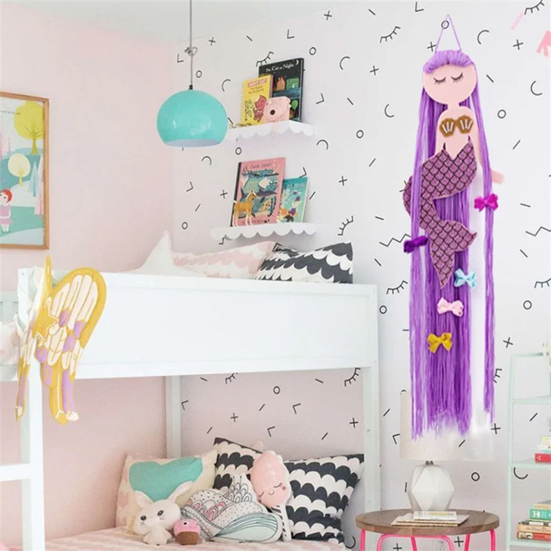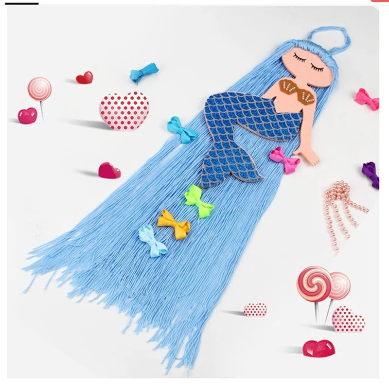 Вязанные банты для волос Русалочки для хранения волос для девочек заколки для волос подвесной Органайзер держатель ленты войлочные изделия Аксессуары для волос для детей