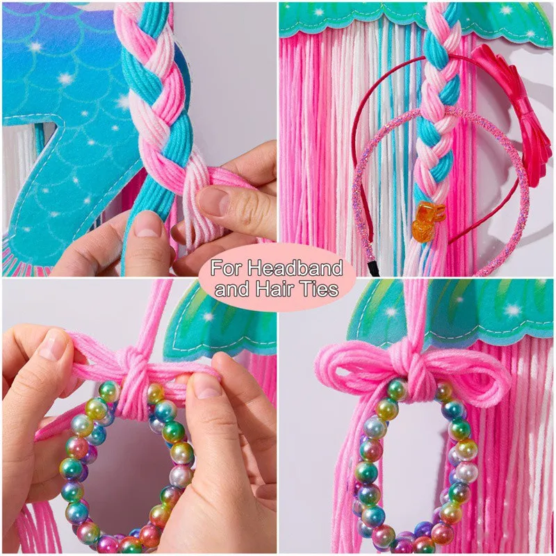 Вязать Русалка волос Луки для хранения для девочек, лента для волос заколки органайзер для подвесного тренинга держатель ленты ремесла из войлока Детские аксессуары для волос