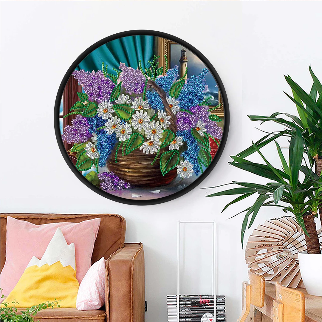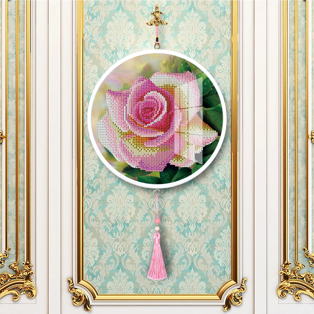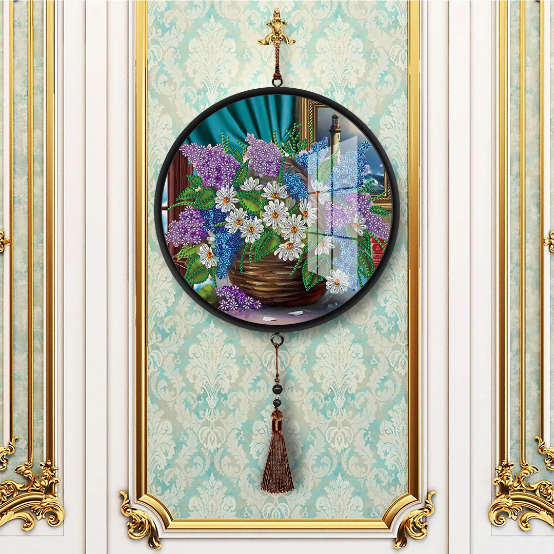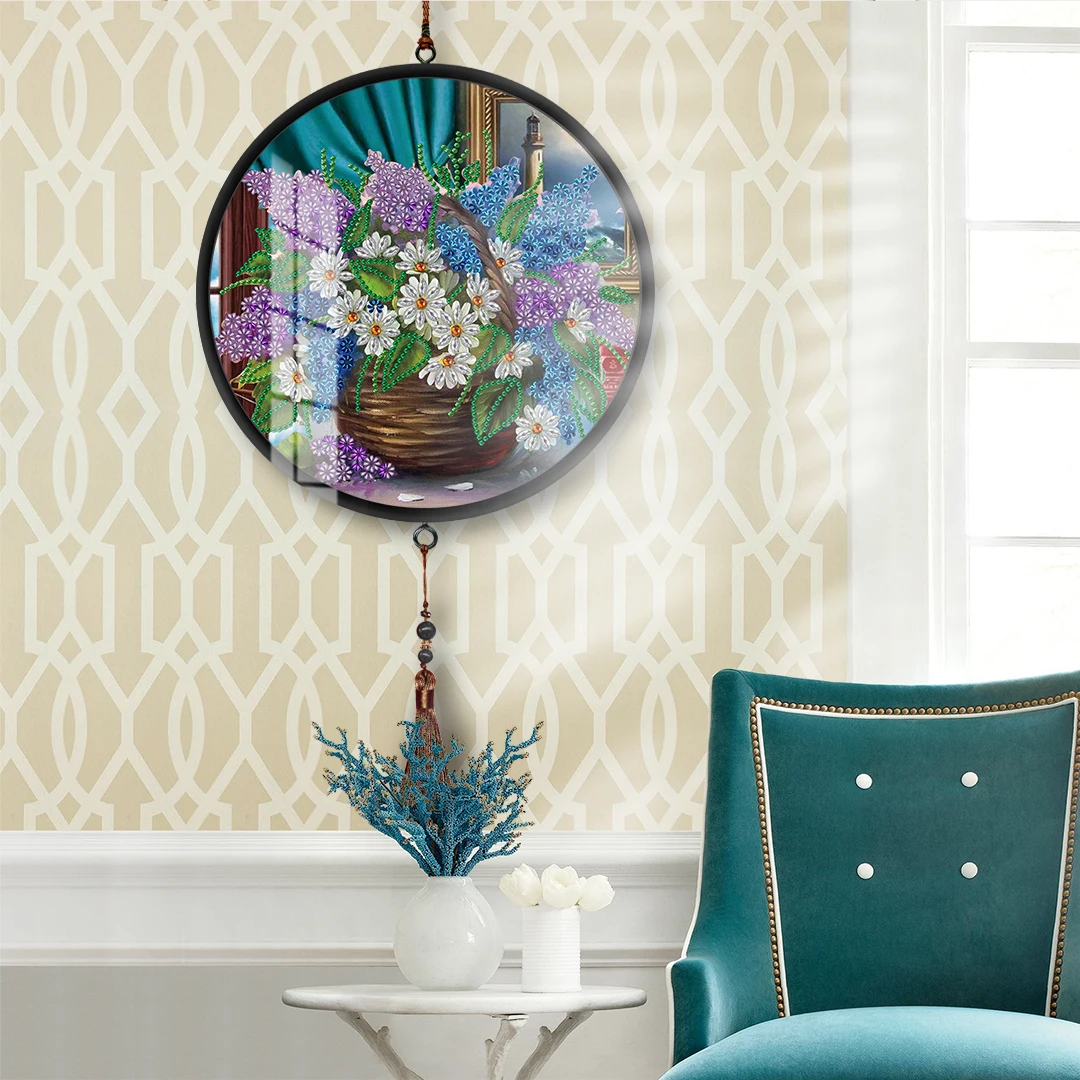 Алмазная 5D картина сделай сам в цветочек с круглой рамкой, слинг, бахрома, алмазная вышивка, вышивка крестиком, украшение для стен дома
