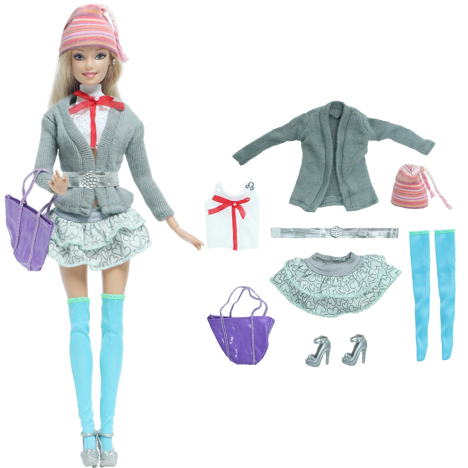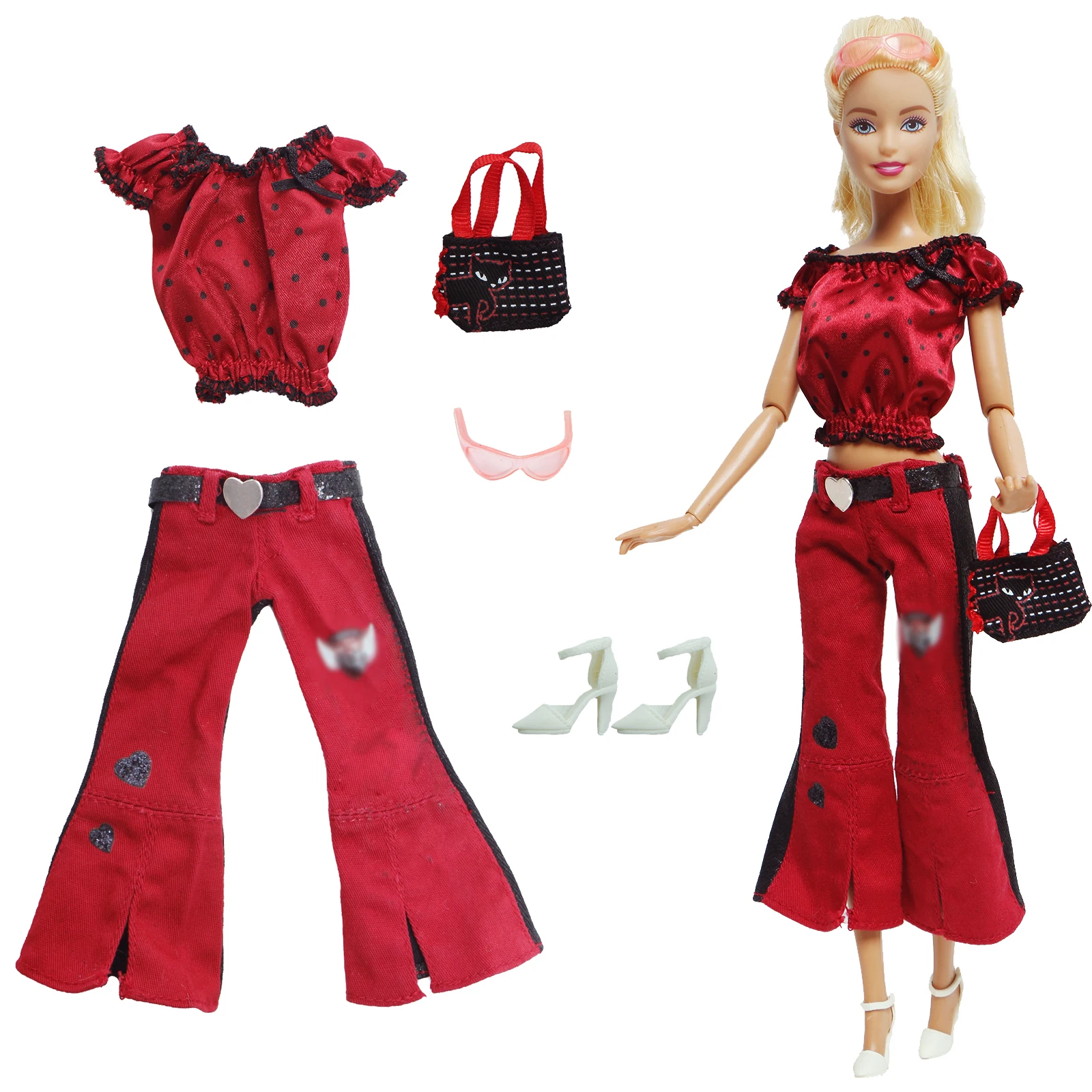 Аксессуары для кукольного платья ручной работы, повседневные брюки, джинсы, футболка, юбка с сумкой, обувь, чулки, Одежда для куклы Барби