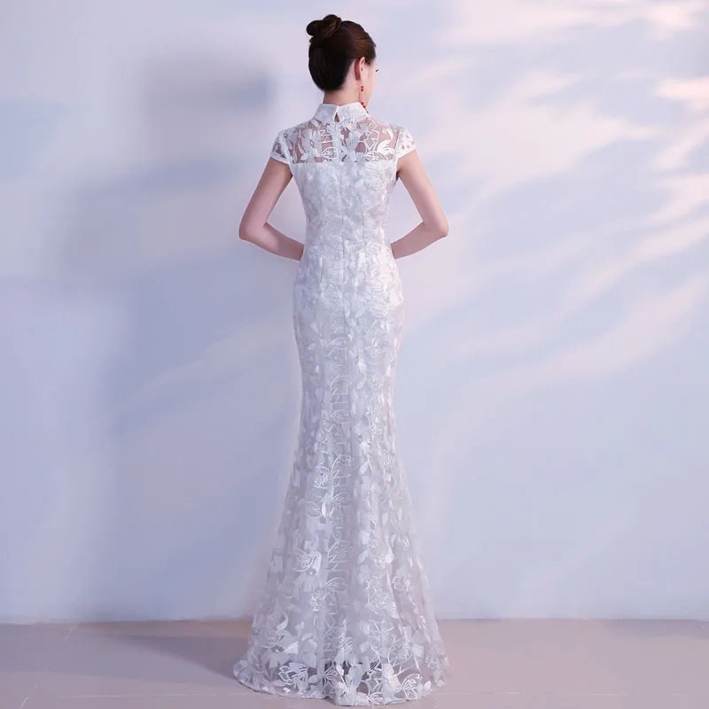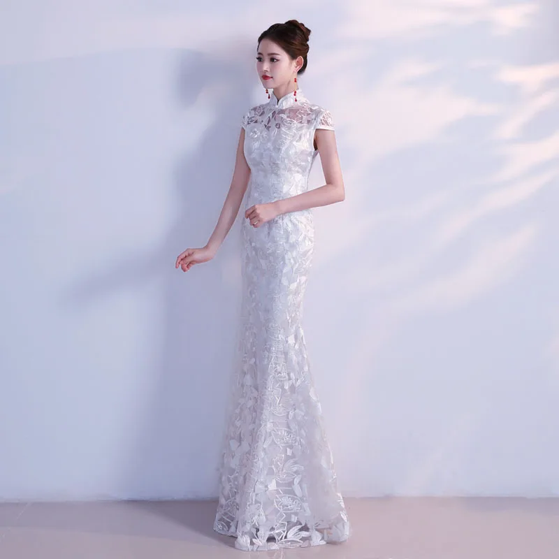 Белое длинное платье Ципао, традиционное китайское свадебное платье, Китайский магазин одежды, платье в Восточном китайском стиле