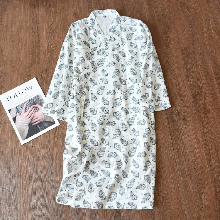 Пижама юката мужская из 100% хлопка, халат, японское кимоно, кардиган свободного покроя, тонкая летняя длинная ночная рубашка