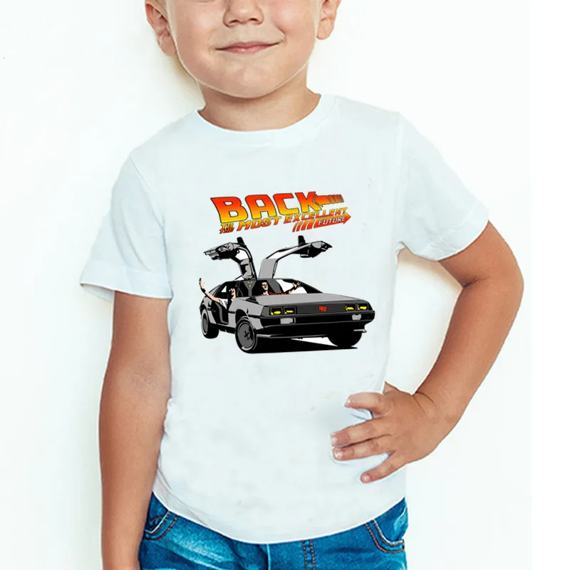 Футболки с принтом Назад в будущее для мальчиков DMC Delorean, летняя модная крутая детская футболка, одежда для маленьких девочек, детские топы